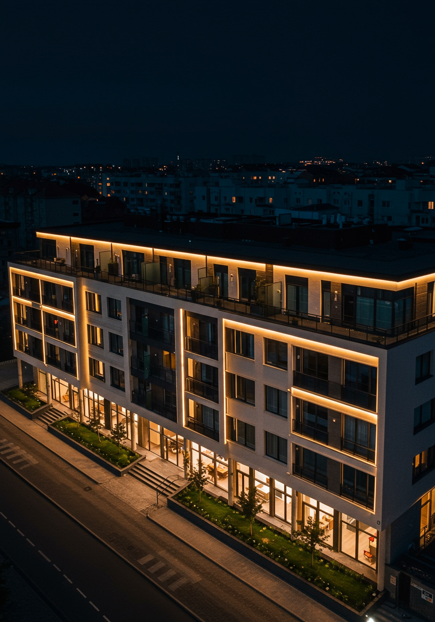 서울 강남 지역 프리미엄 아파트 단지의 외벽 경관조명 프로젝트입니다. 에너지 효율이 높은 LED 조명 시스템을 활용하여 건축물의 아름다움을 극대화하고, 야간 도시경관의 랜드마크로 자리잡았습니다. 계절과 시간에 따라 다양한 조명 연출이 가능합니다.